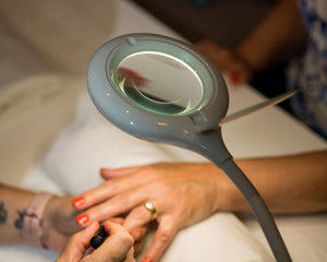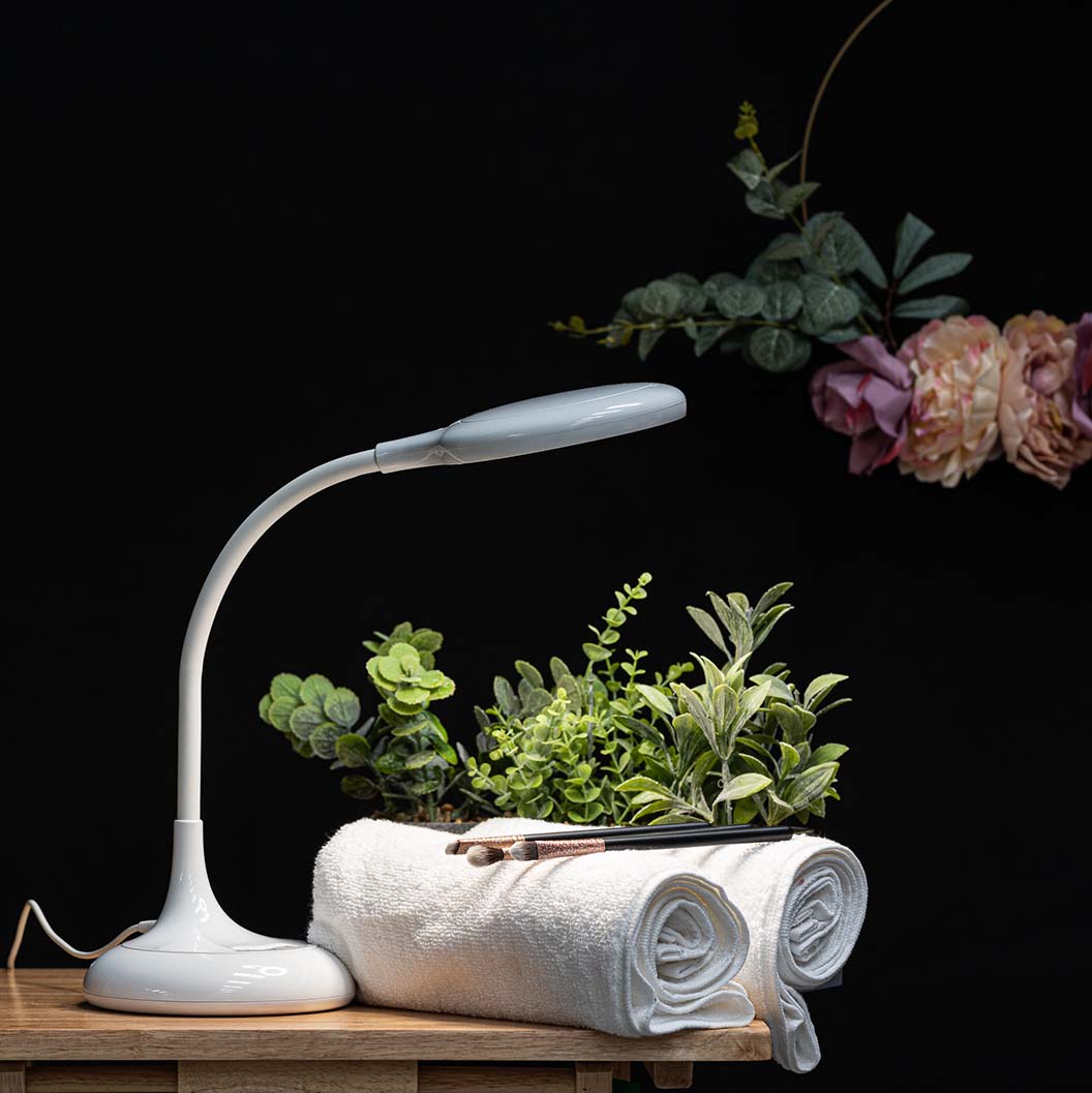 A robust desk lamp with dimmable warm, cool and daylight options, plus 3X magnification. The Chameleon Desk Magnifier is powered by a mains cable. The flexible gooseneck delivers the light and magnification exactly where it’s needed. Invaluable for intricate beauty work and the daylight setting is a must for clear colour matching. UK 3 pin plug included.