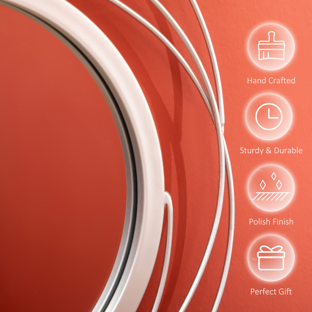 - Waved circle design: The metal wall art features a beautiful cut-out design with pieces fitted together around each mirror. It has a gold-tone finish for an elegant touch.