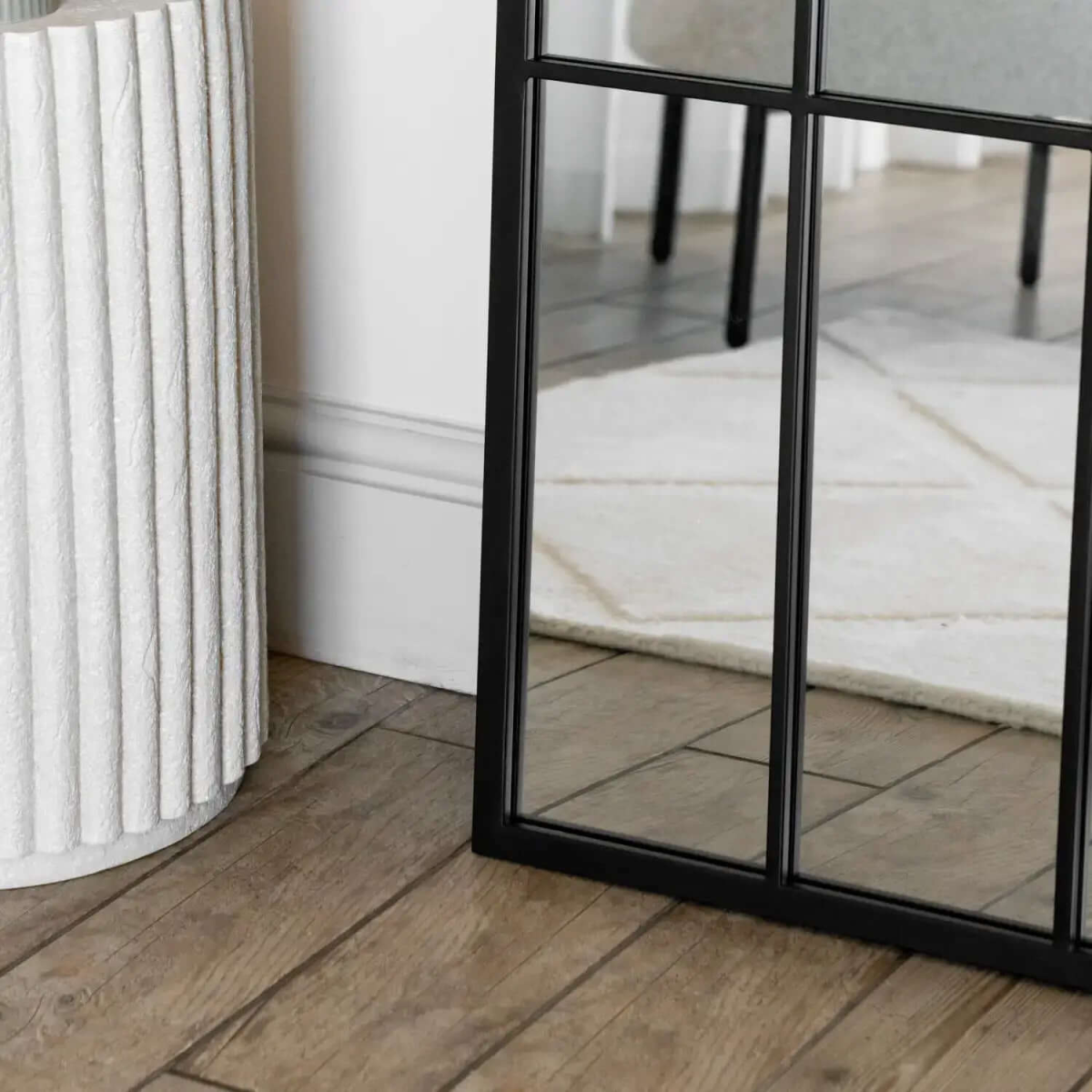 Tomi - Full Length Black Metal Arched Lattice Window Mirror - 180cm x 90cm
