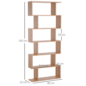 6-Tier Wooden S-Shaped Shelf Storage Unit Home Office Maple Colour
