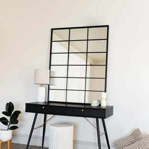 Kyō - Black Metal Rectangle Lattice Window Mirror - 120cm x 95cm