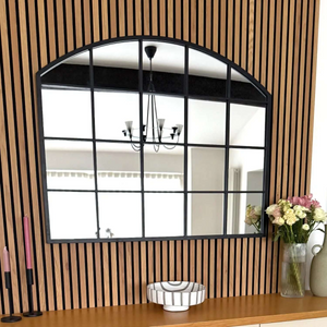The Tomi mirror range is a fantastic addition to any home decor with a distinctive and timeless curved arched window pane design that creates a lattice window mirror effect, infusing phenomenal impact into any space by enhancing natural light and conveying an expansive feeling. The chic modern frame, available in elegant black metal finishes, integrates seamlessly into any interior style. Every frame is hand welded to produce nearly invisible joints, delivering a high-end aesthetic and meticulous craftsmanship that underscores its premium quality.