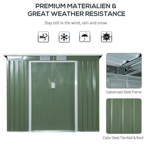 This garden shed from Outsunny is made of high-quality steel, which is durable, resistant to corrosion and will stand proudly in your garden. It is fitted with an inclined steel roof to prevent water build-up, a double door for easy access and two vents for air flow inside to prevent mould and humidity. And the galvanized steel foundation can elevate the tools and equipments and protect them from humidity from ground. Great solution to store all your gardening equipment or just a space for you to store any items you wish.