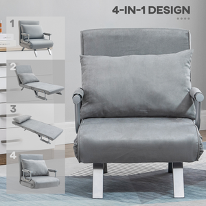 Sofa Bed Foldable Portable Armchair Sleeper Lounge Pillow Light Grey