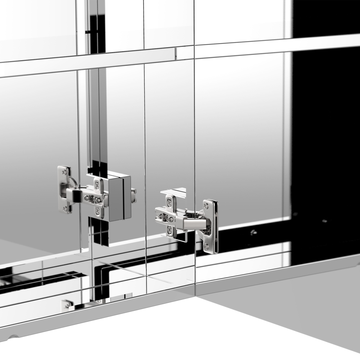 STYLISH, COMPACT CABINET: This two door, mirrored stainless steel floating bathroom cabinet creates a polished, clean look and gives you the ability to store personal hygiene essentials out of sight.AMPLE STORAGE OPTIONS: Three fixed interior metal shelves provide multiple levels of storage within this reflective medicine cabinet, the metal surface adding depth and an artistic touch when colorful items are stored in the cabinet.TRIPLE MIRROR DESIGN: Our mirror cabinet offers a triple mirror design, with a mirrored surface on the front, on the back of the door, and the rear wall of the interior of the cabinet so you can use it at any angle.SAFE CLOSING DOOR: A easy open and close door ensures there will be no slamming or surprise pinched fingers while using this cabinet, protecting both your glass mirror and your stored items as well.DURABLE, LASTING MATERIALS: Rust-resistant, stainless steel ensures years of continued use with an easy wipe down surfaces. DIMENSIONS: 55H x 60W x 12Dcm. ASSEMBLY REQUIRED.